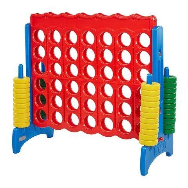 Children of all ages love the life-sized version of the classic ring-dropping game. The Jumbo Connect 4 game is guaranteed to be a hit with family and friends at birthday parties, family reunions, daycare programs, school events, and more. Young players build teamwork and cooperation skills while they learn to match four colorful rings in a row to win. Adults love to challenge each other with skill and strategy. This interactive game is great for two players, and also works with teams for epic kids-versus-grown-ups championship matches. Designed for use both indoors and outdoors,