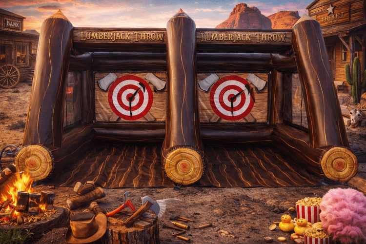 Battle your friends to the Lumberjack Ax Throw!  Who can hit the target and get their "ax" to stick.  This game can take 2 players at a time and have a nice view for the crowd to cheer on their friends.