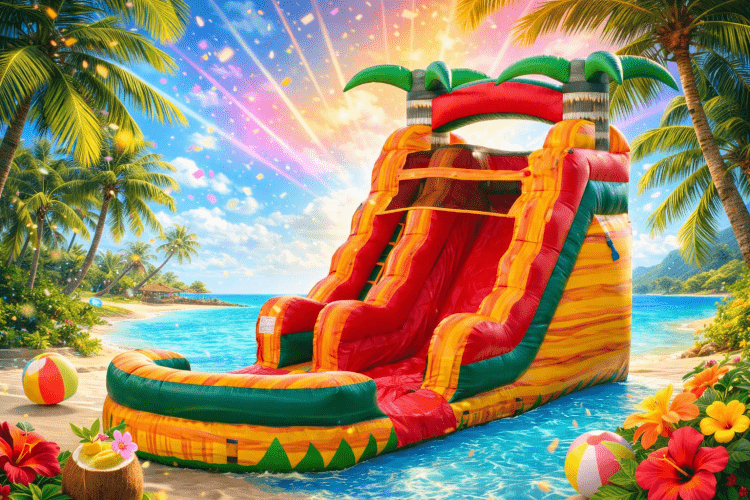 The kids never have to leave the inflatable as they can go straight from the bottom of the slide, back over to the ladder again, without getting out and going around the slide to climb up the ladder again.  Less wear and tear on your yard!  With a slightly lower height and a slightly longer run at the end, even older kids can use this slide too.