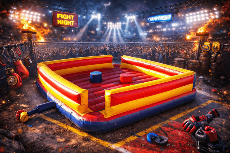 Popular with kids of all ages (and yes that includes those that are kids at heart), this Gladiator Joust will add excitement to any event. Players can challenge each other as they balance on their own pedestal and use padded joust poles to try and knock each other to the game floor. An inflatable jousting arena offers secure safety walls and safe place for players to land. Padded head gear adds to the safety. Both the joust poles and head gear are included in the rental price.