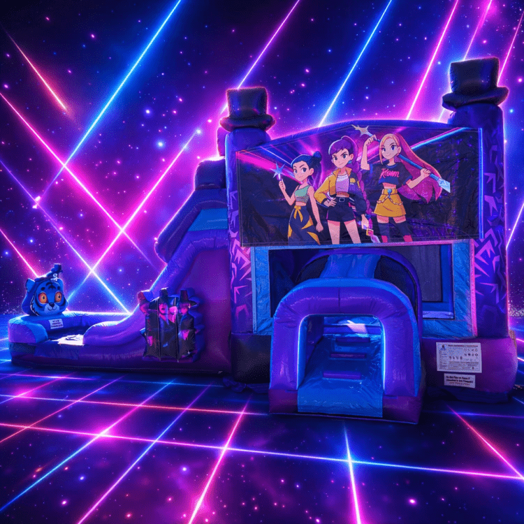 Bring the high-energy fun of a K‑POP party to your event with this K‑POP Combo rental. Designed for groups who love music, movement, and bright visuals, this combo pairs a lively bounce area with an attached slide and play space to keep kids entertained for hours. It’s perfect for birthday parties, school events, or any celebration where kids want to jump, climb, and race down a slide in a safe, enclosed environment.
