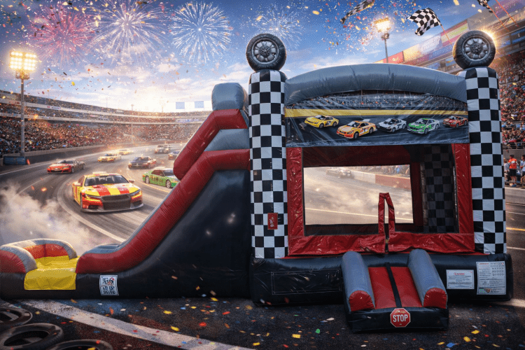 Make your next backyard celebration a big hit with the Race Car Combo bounce and slide. It's fun for kids, and just as much fun for adults!